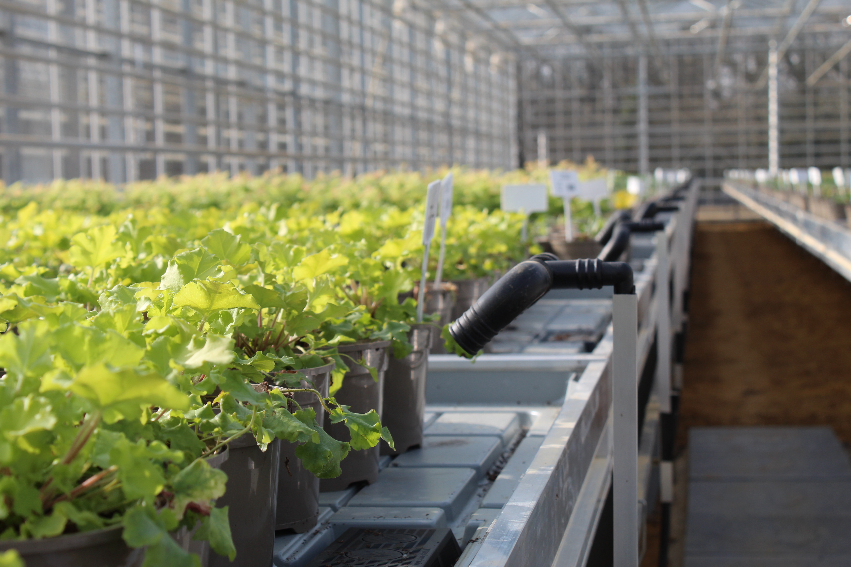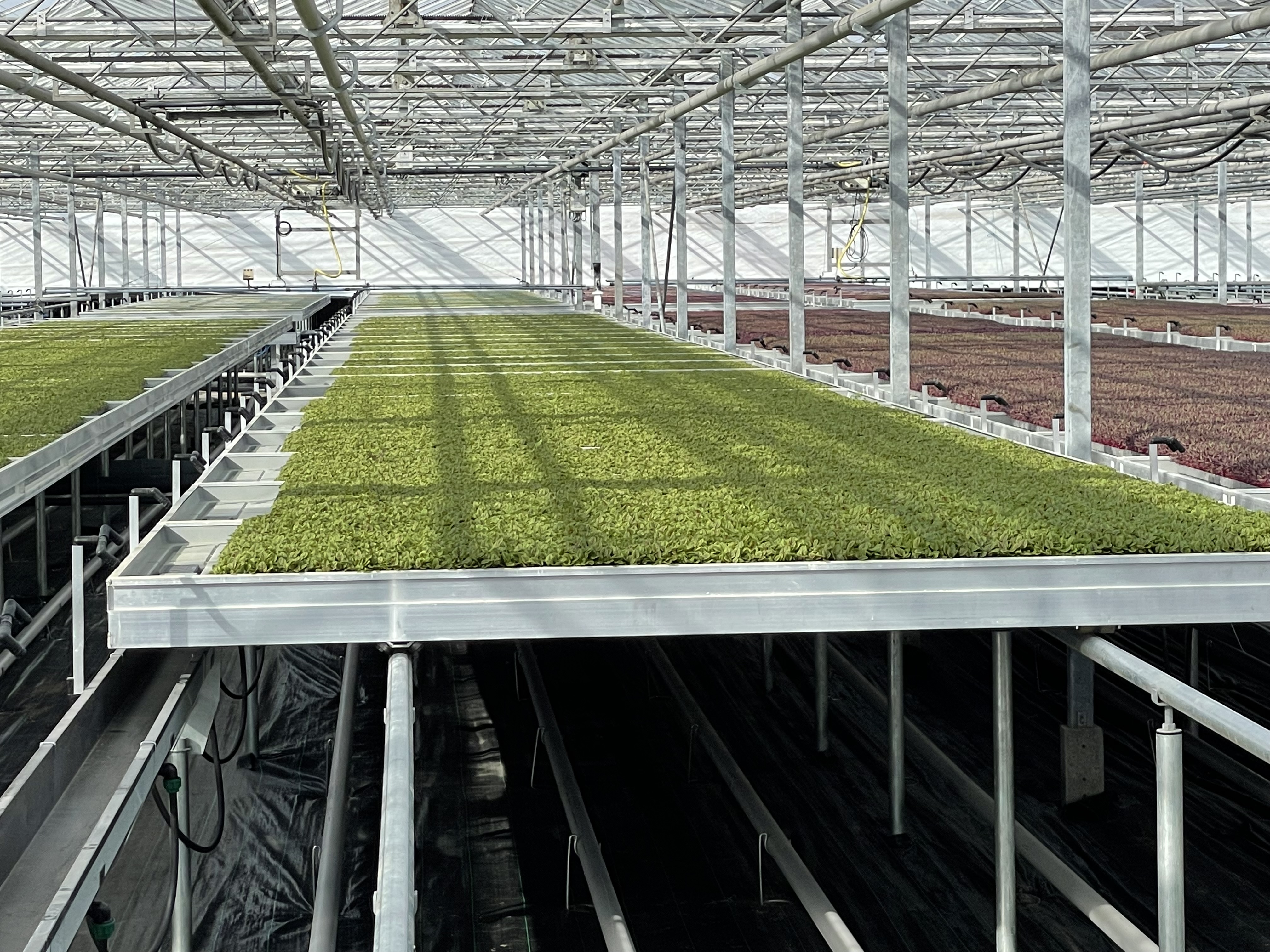 Ebb and flood benches irrigate plants by flooding the bench surface with nutrient solution and draining it after a set rate. We use automated ebb and flood systems that promote water efficiency and healthy root development.