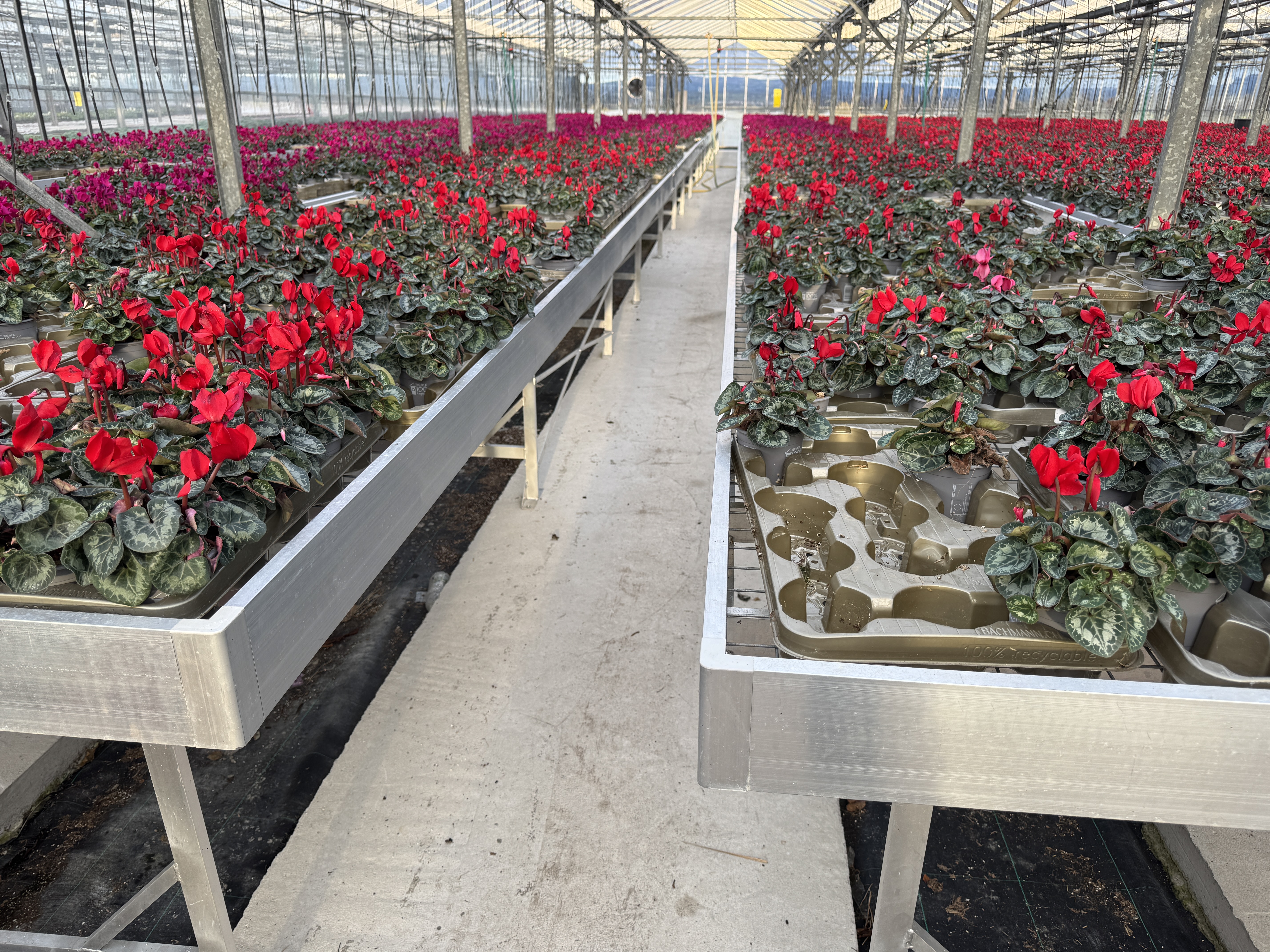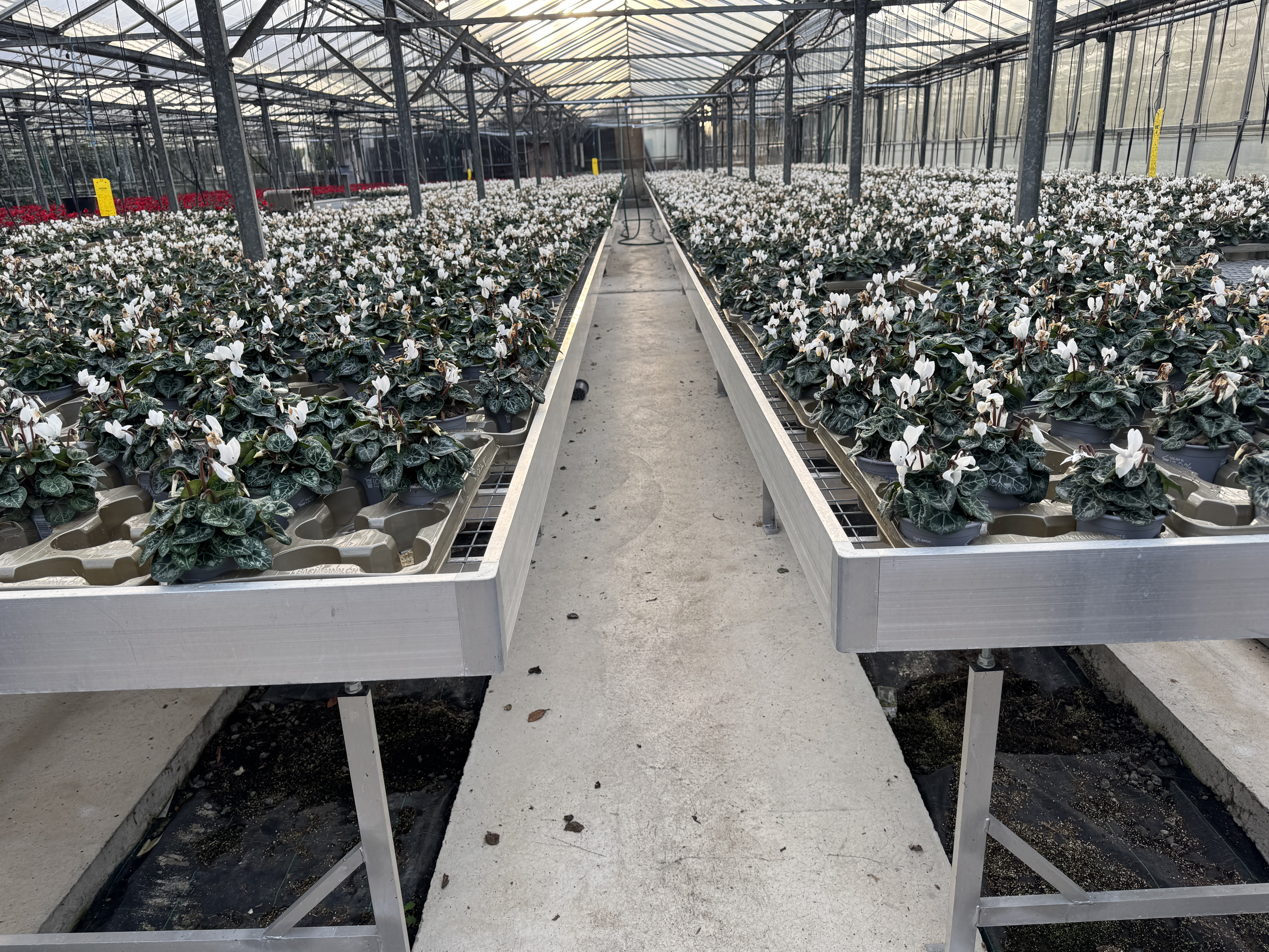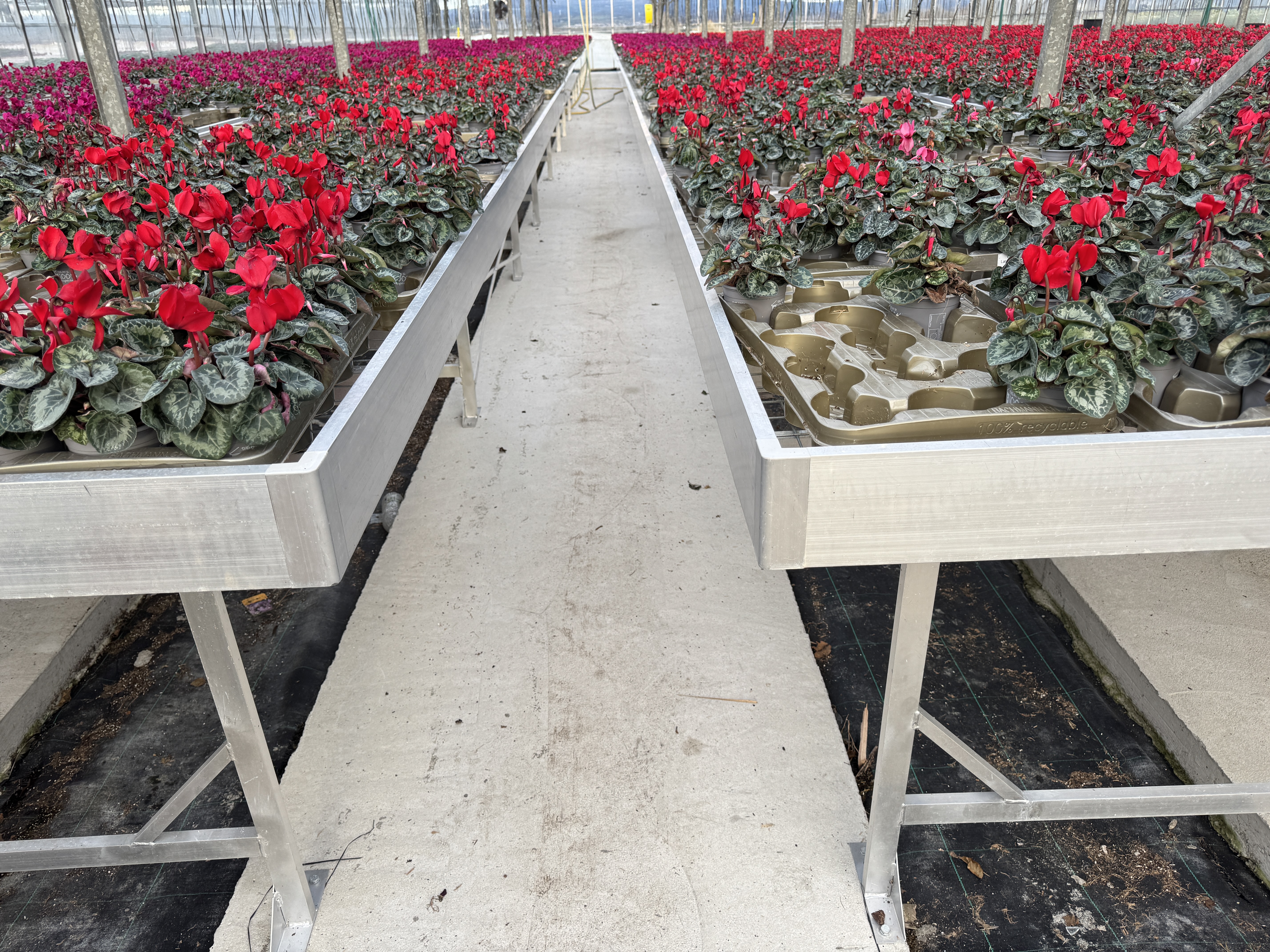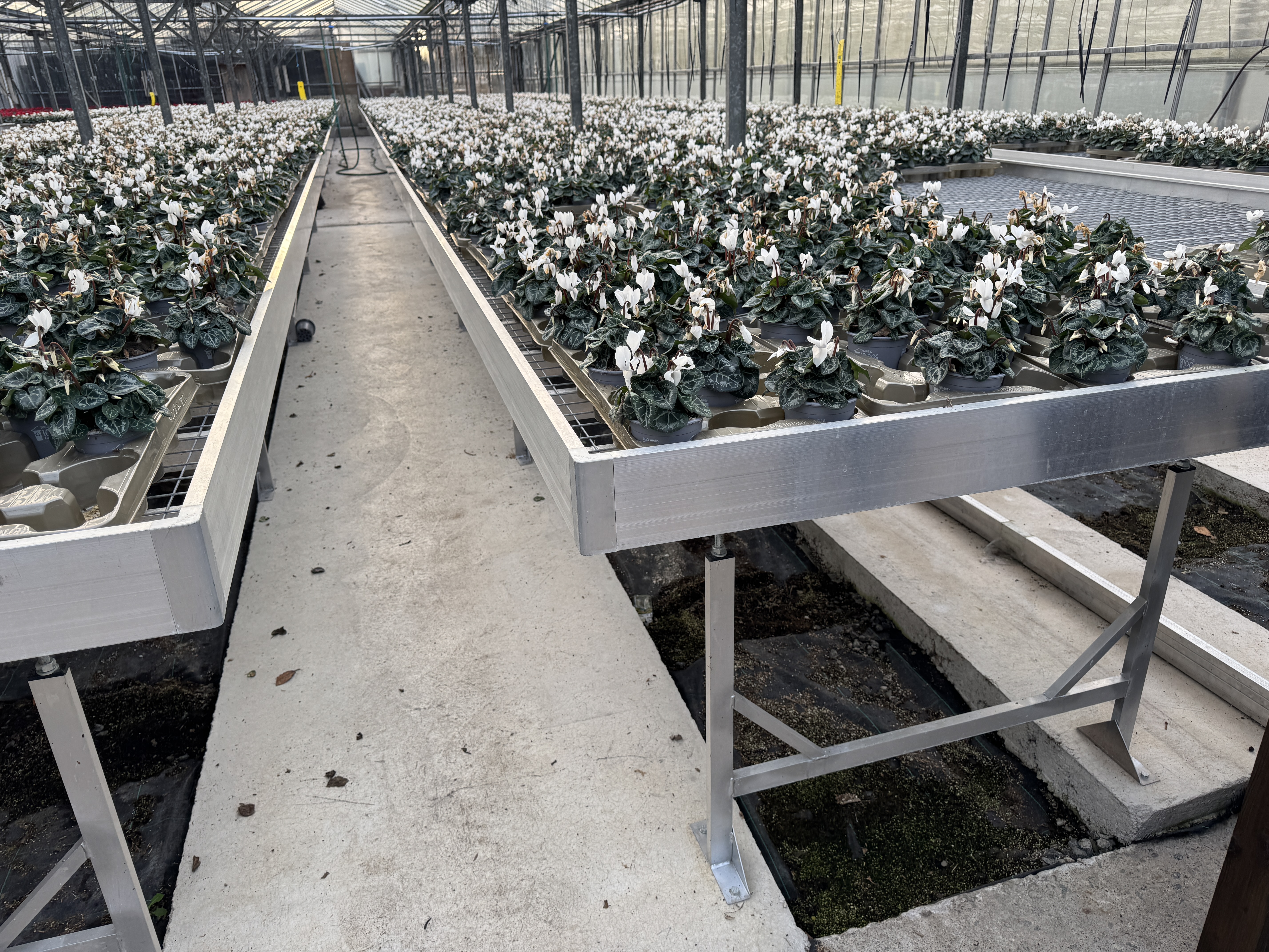 Each bench has been expertly engineered for this particular grower’s convenience, measuring 1.34m wide to allow clear, comfortable access from both sides, with impressive lengths ranging from 26m to 28m to support large-scale production.