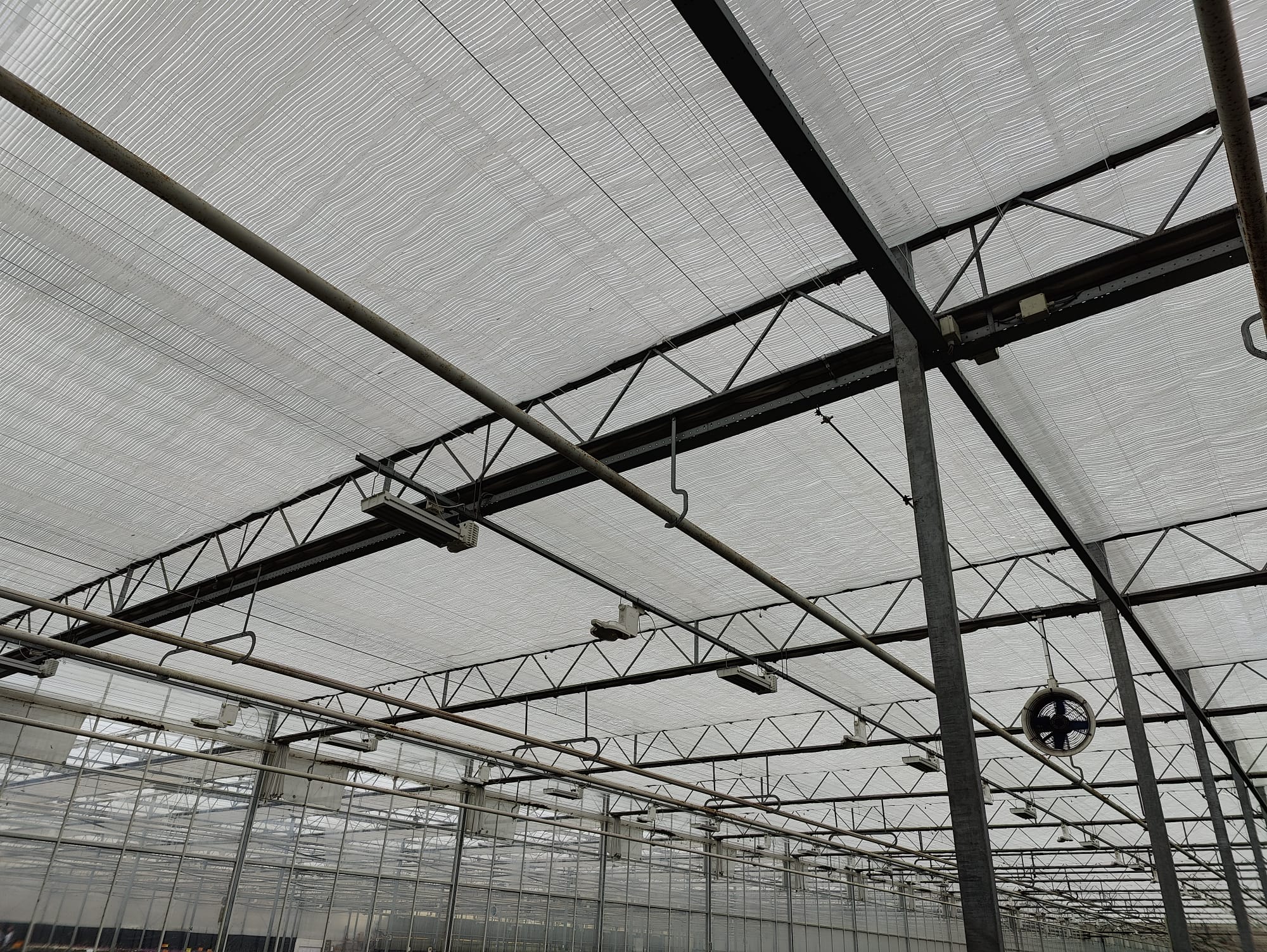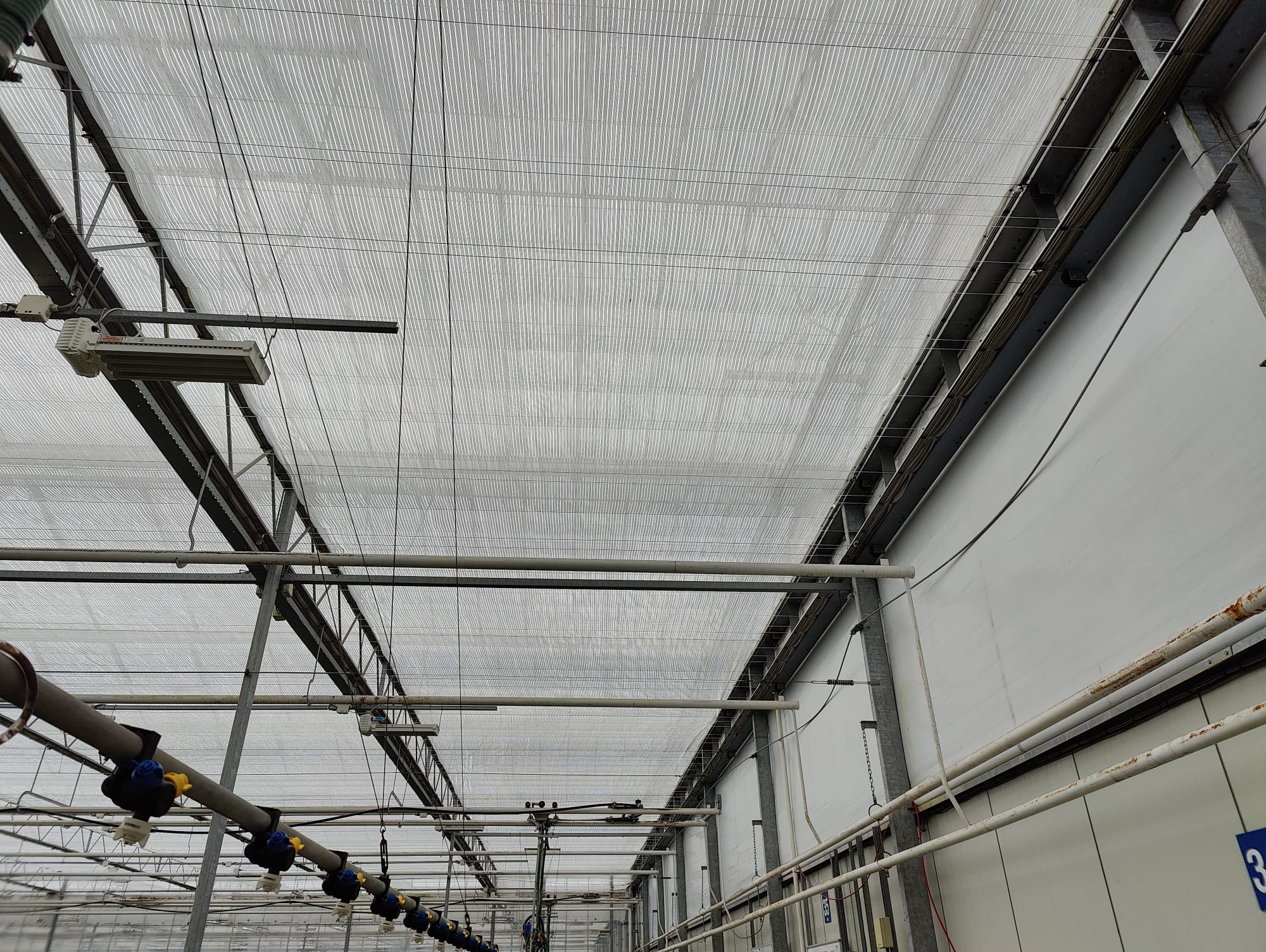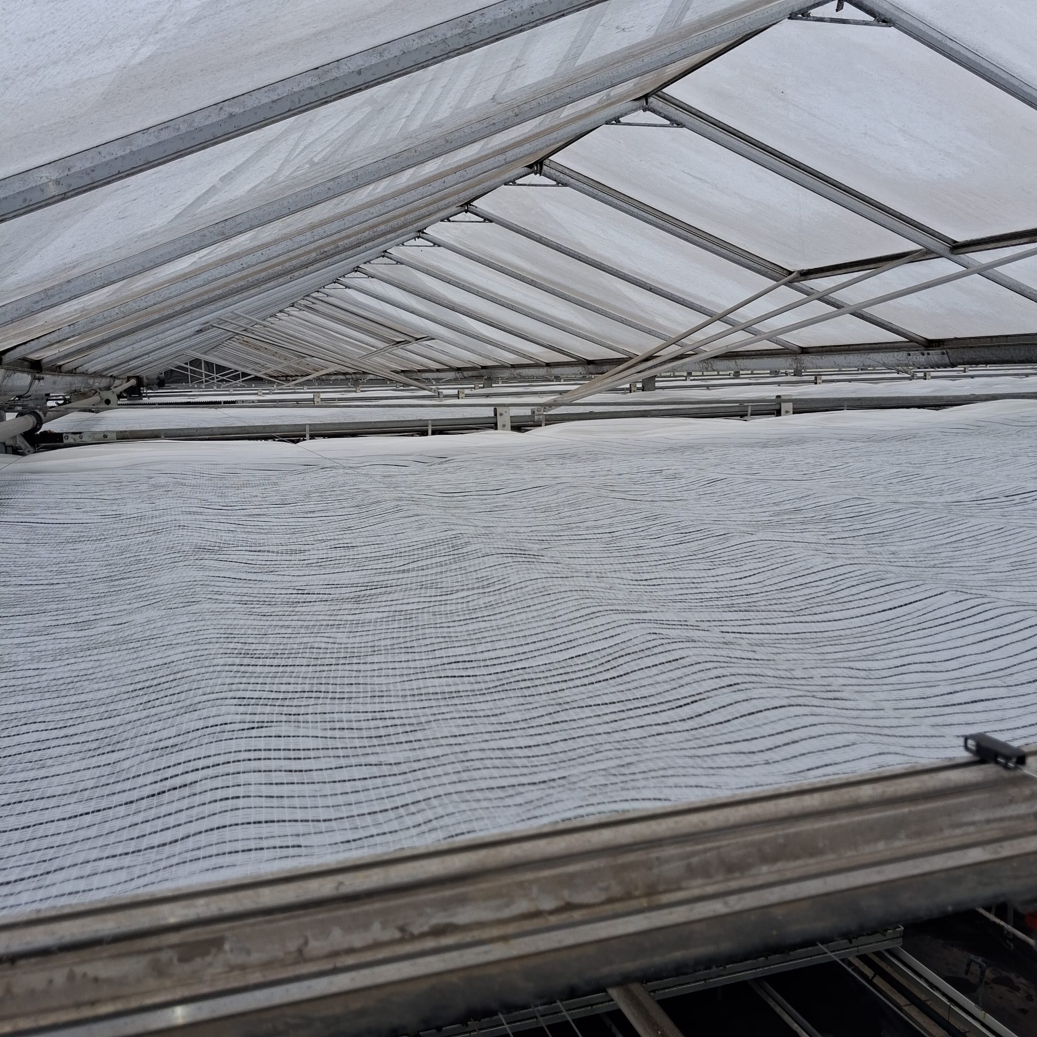 A key feature of the installation was that all works were undertaken using custom-built gantries suspended from the existing monorail and high-level pipework system. This access method allowed the installation to be carried out safely and efficiently while the crop remained in place, avoiding disruption to production and eliminating the need for crop removal.
