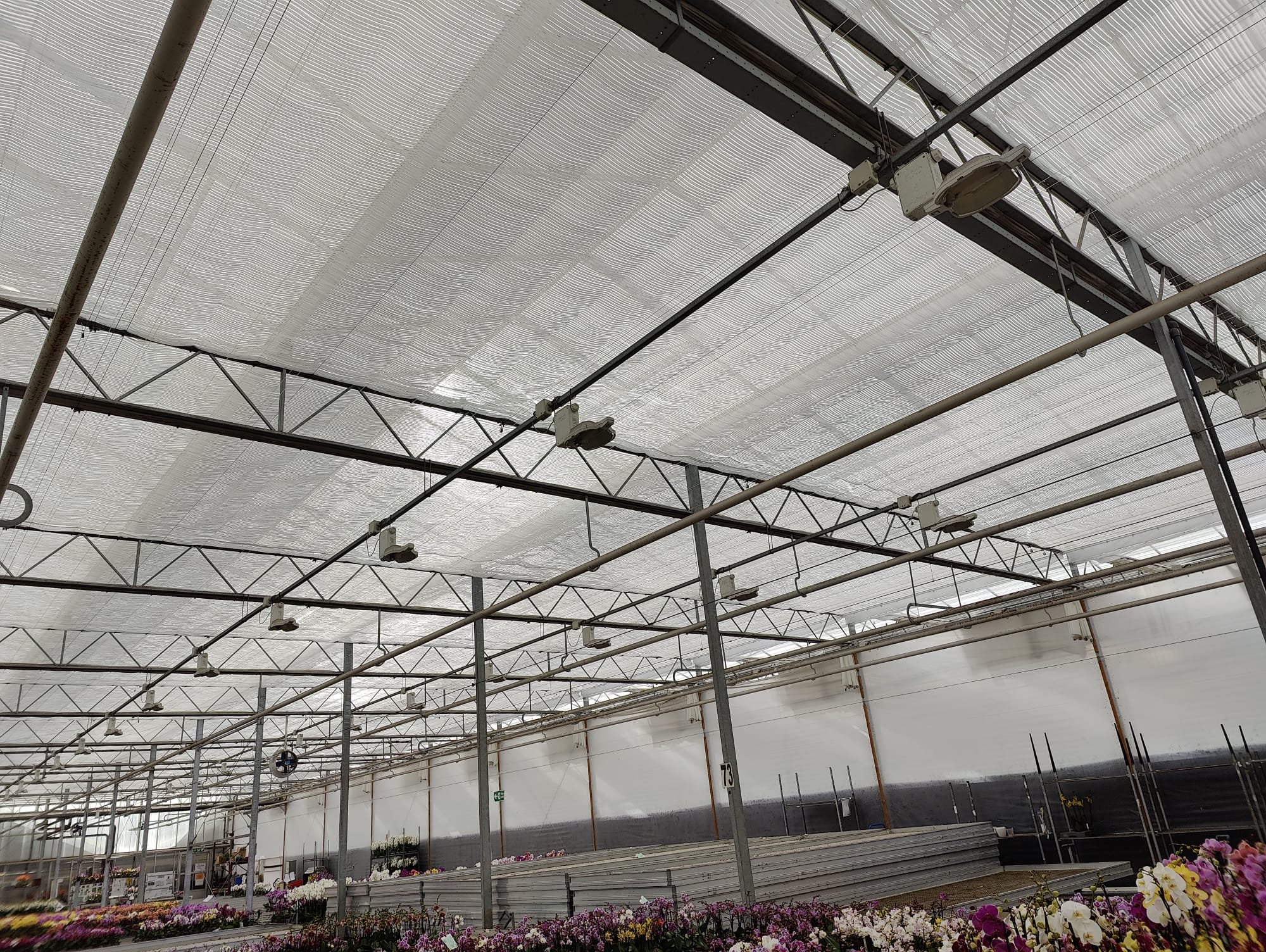 For this renovation, PhormiTex Lumina 60 O material was selected, delivering a 60% direct shading value while achieving energy savings of up to 25%. This advanced screening solution improves light diffusion and temperature control—critical factors in the successful cultivation of sensitive ornamental crops such as orchids.