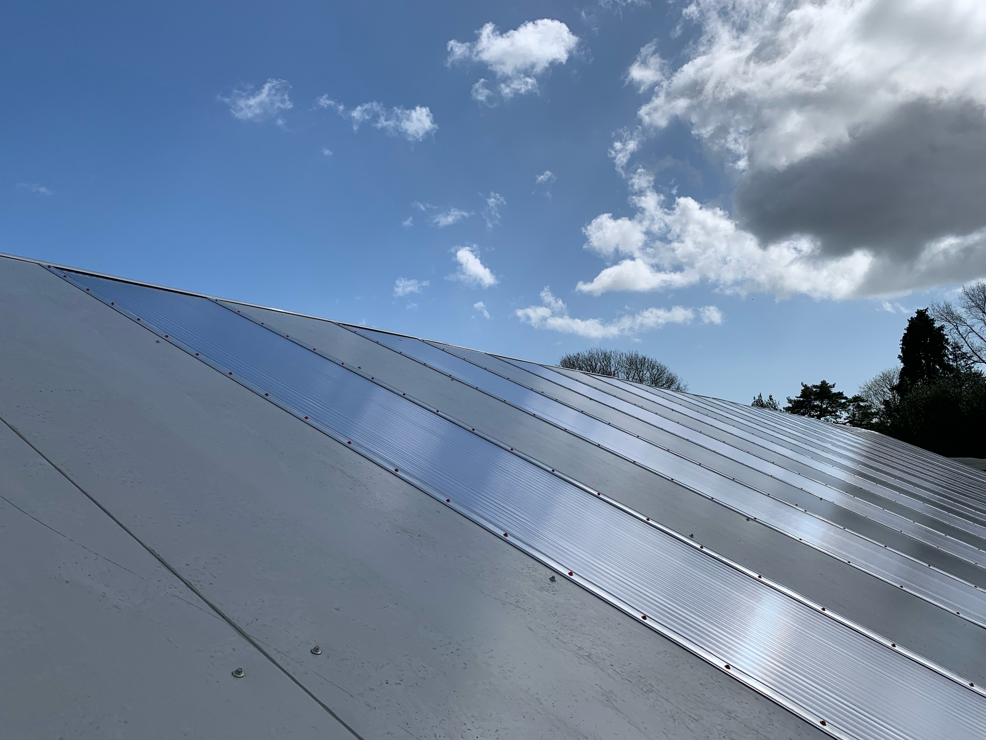 The upgraded roof features 120mm-thick SAB flat Goosewing grey composite panels, fitted with rubber seals between each panel to ensure a fully watertight finish. To maximise natural light, the roof also incorporates clear twin-wall polycarbonate panels, bringing increased daylight into the greenhouse.
