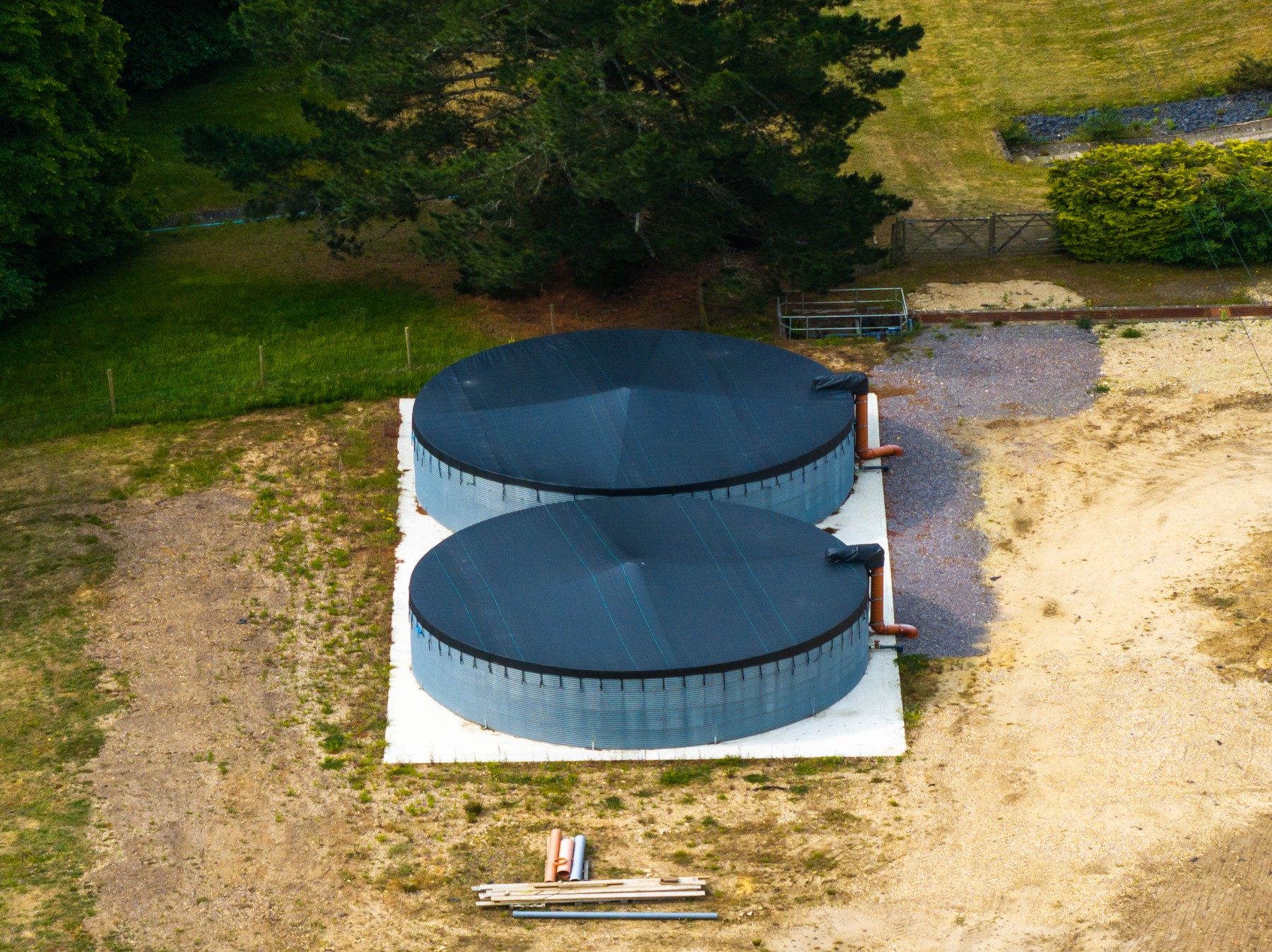 To support sustainable operations, a rainwater harvesting system was integrated, capturing runoff from roof gutters and storing it in two large tanks with a combined capacity of 535,000 litres installed by Ebtech.