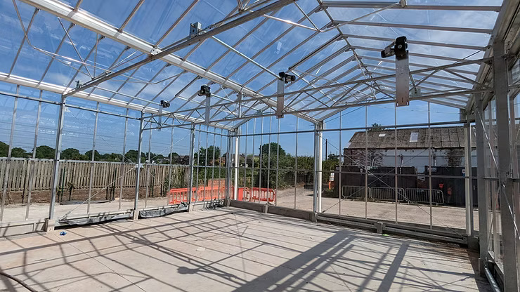 Ebtech Glasshouse Systems recently completed a bespoke glasshouse installation for a scientific research facility in Lancashire. Although compact, the project involved complex engineering due to its elevated foundation requirements and integration with the site's existing infrastructure.