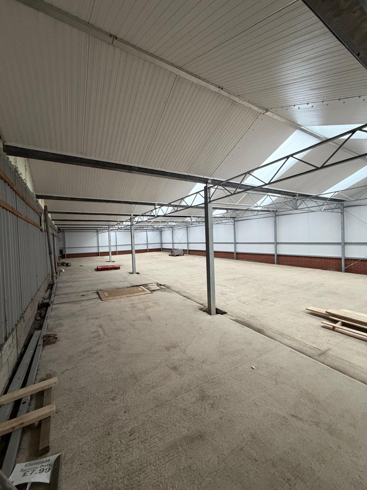 The objective was clear: to increase internal retail space and create additional room for garden centre stock. Working closely with the client, Ebtech developed a tailored structural solution that maximised usable floor area. By incorporating an under-gutter trellis system, we eliminated the need for a row of internal support posts — providing uninterrupted space and greater flexibility for product displays.